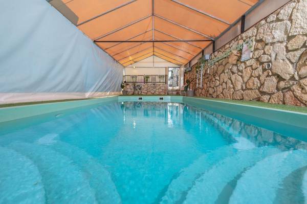 בריכת שחייה מחוממת ומקורה בגודל 8 על 4 מטר