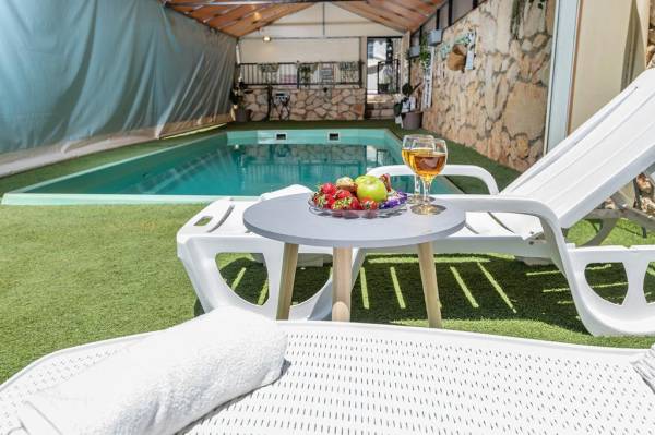 במתחם החיצוני תוכלו להנות מבריכת שחייה מחוממת ומקורה, משחקי שולחן, ג'קוזי ספא מפנק ועוד..
