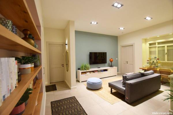 סלון מודרני ומעוצב עם פינות ישיבה נוספות, מסך צפייה ענק 80 אינץ' עם חיבור ל-YES ולנטפליקס