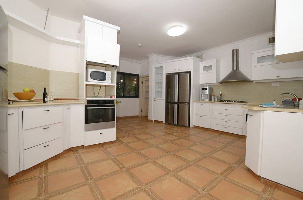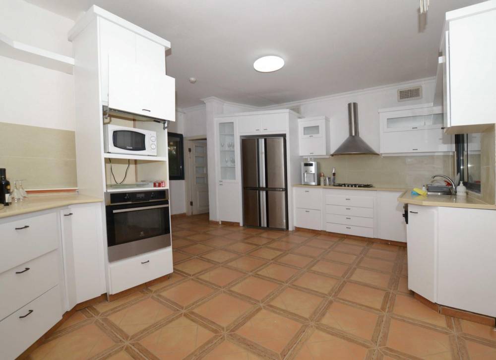 מטבח גדול ומאובזר בכל טוב מקרר כפול, מקרר יינות, מיקרוגל, תנור, כלי מטבח שונים ושימושיים