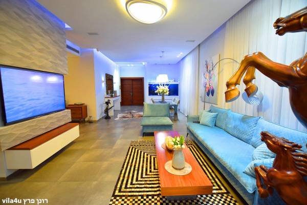 חדר סלון מרווח עם מסך LCD 70 אינץ' וחיבור ללוויין של HOT