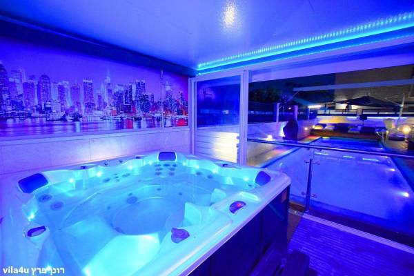 ג'קוזי ספא זרמים מקורה בגודל 2.30/2.30 מ' מתאים עד 7 אנשים וממול מסך LCD 65 אינץ'