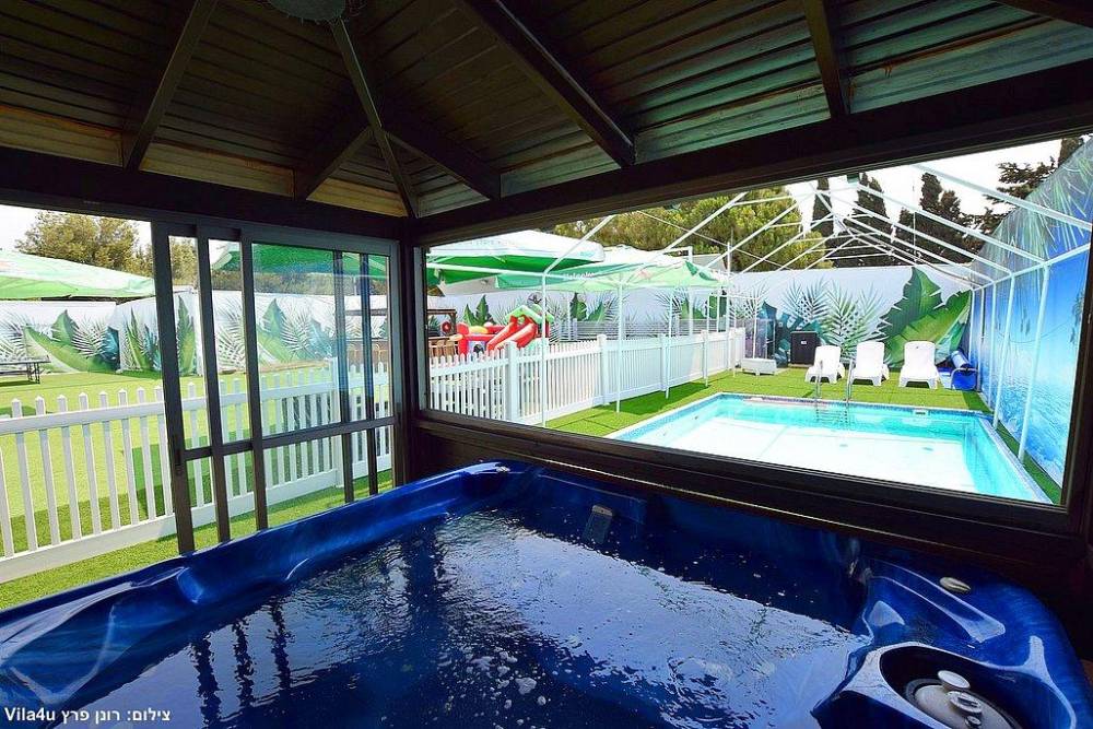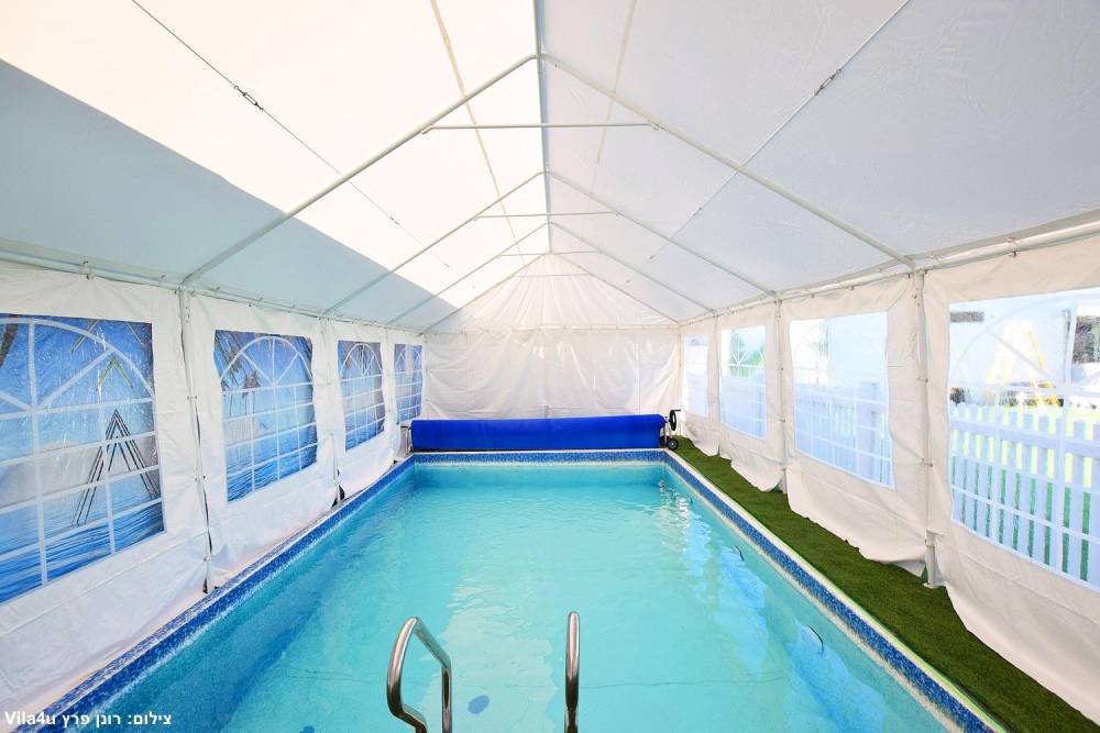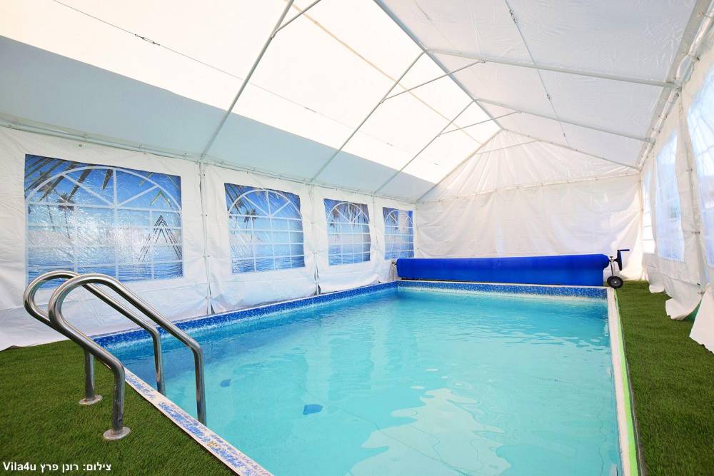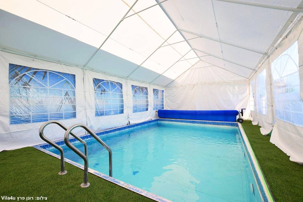 המתחם החיצוני ענק ומתאים לאירועים, הבריכה מחוממת מקורה בחורף