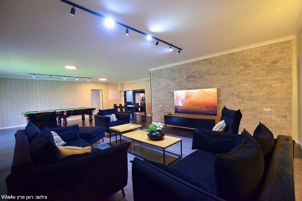 סלון רחב ידיים עם טלוויזיה גדולה עם חיבור לHOT
