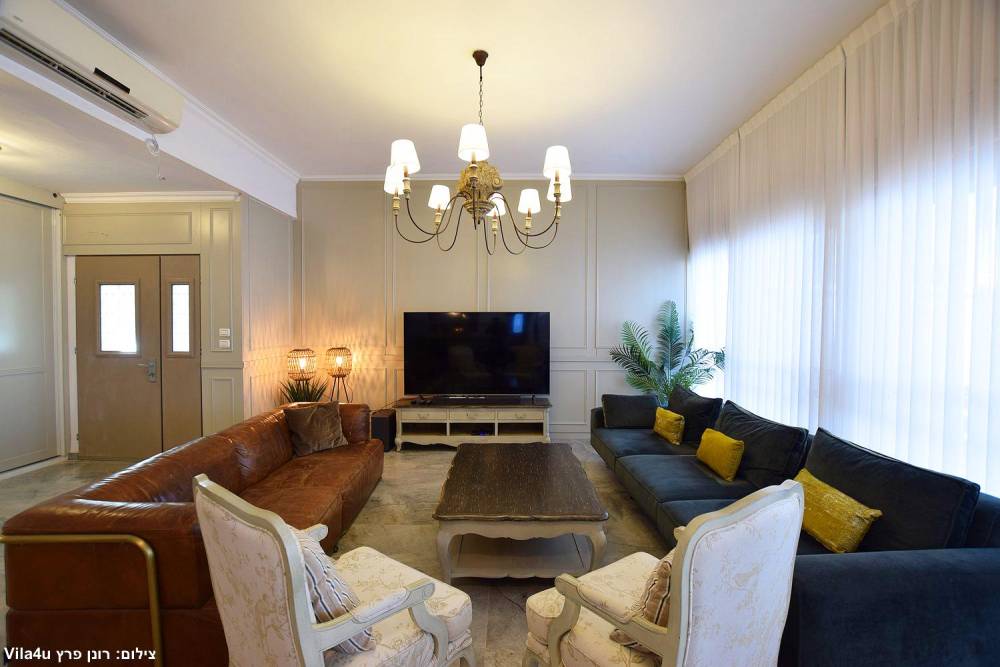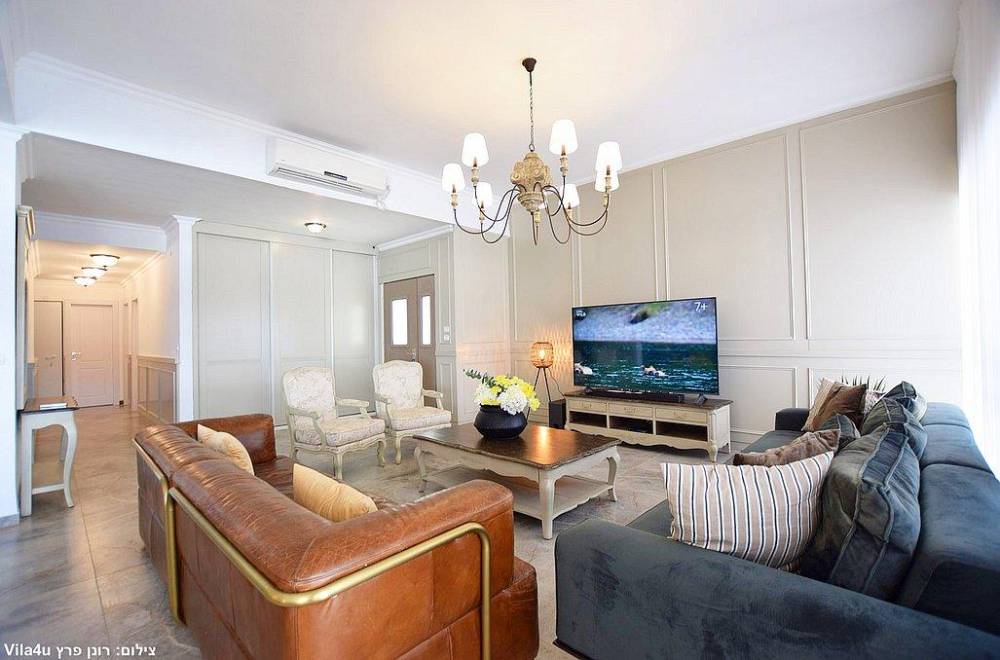 סלון מרווח עם מערכות ישיבה וטלוויזיה עם חיבור לערוצים.