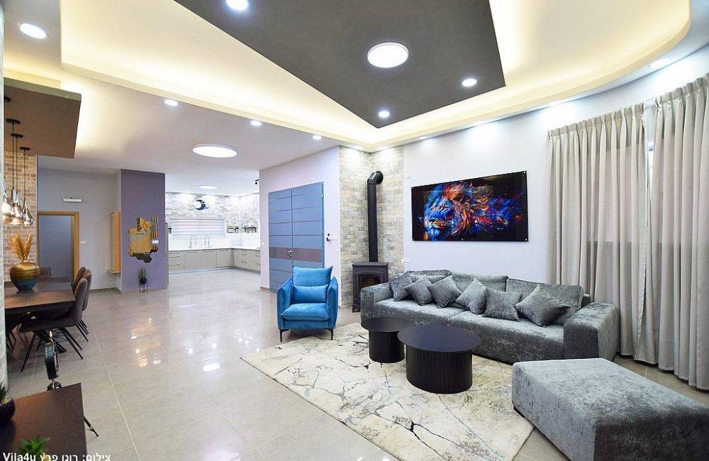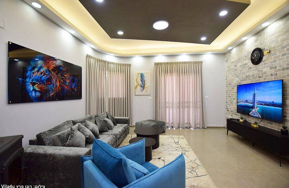 סלון מעוצב ויוקרתי + מסך צפייה גדול עם חיבור ל-YES