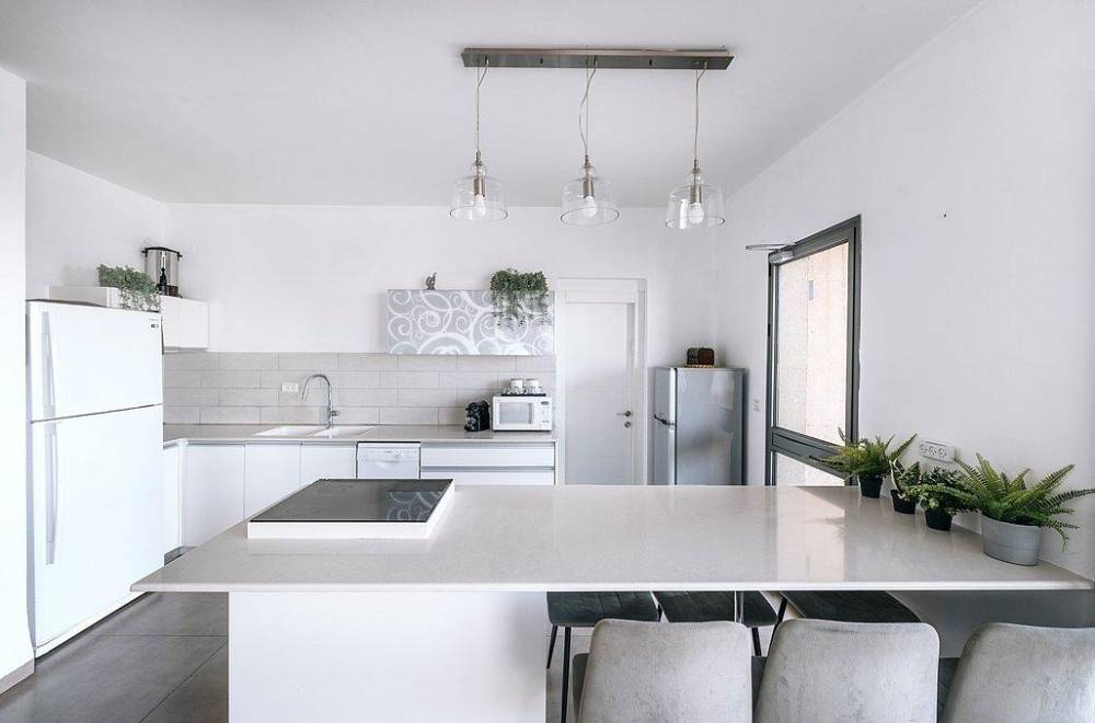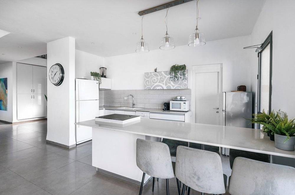 מטבח מאובזר המכיל: מיקרוגל, 3 מקררים (אחד גדול ו-2 בינוניים), תנור, כיריים חשמליות, מתקן לשתייה, כלי אוכל והגשה, מדיח כלים, מכונת קפה