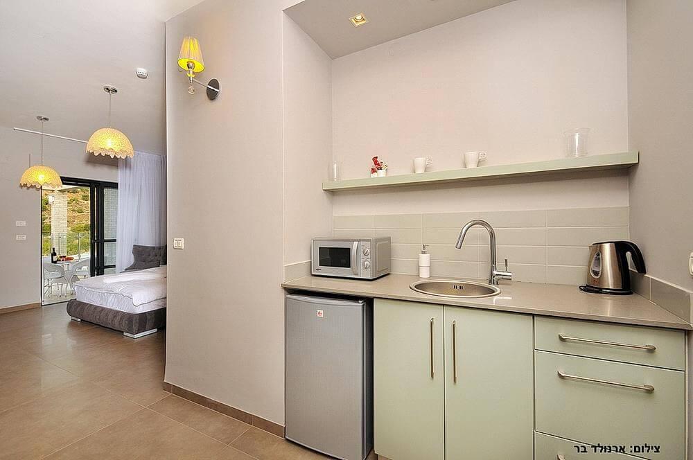 מטבח מאובזר במקרר 3 דלתות, מיקרוגל, תנור אפייה, תמי 4, כיריים, כלי אוכל ובישול