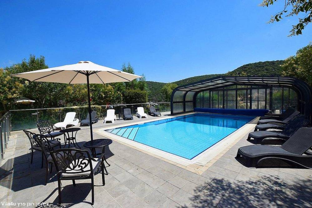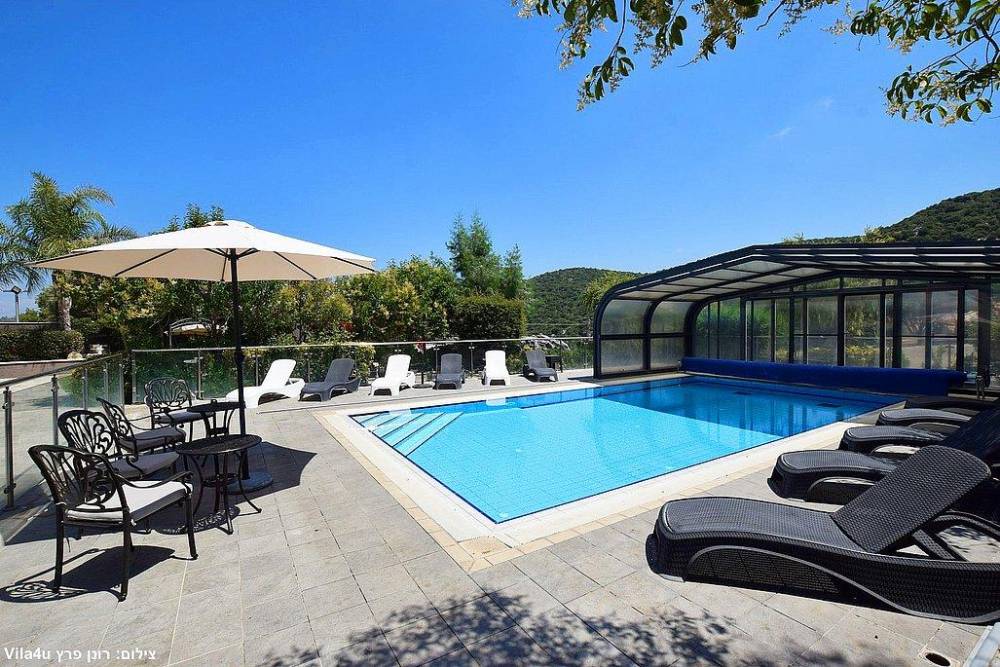 לרשות האורחים בריכה מחוממת ומקורה, מתחם ספא עם סאונה וג'קוזי ספא, 8 חדרי שינה (7 מהם עם ג'קוזי זוגי) ונוף עוצר נשימה.