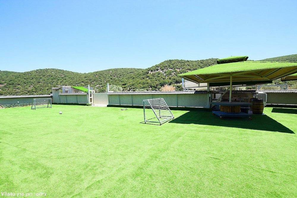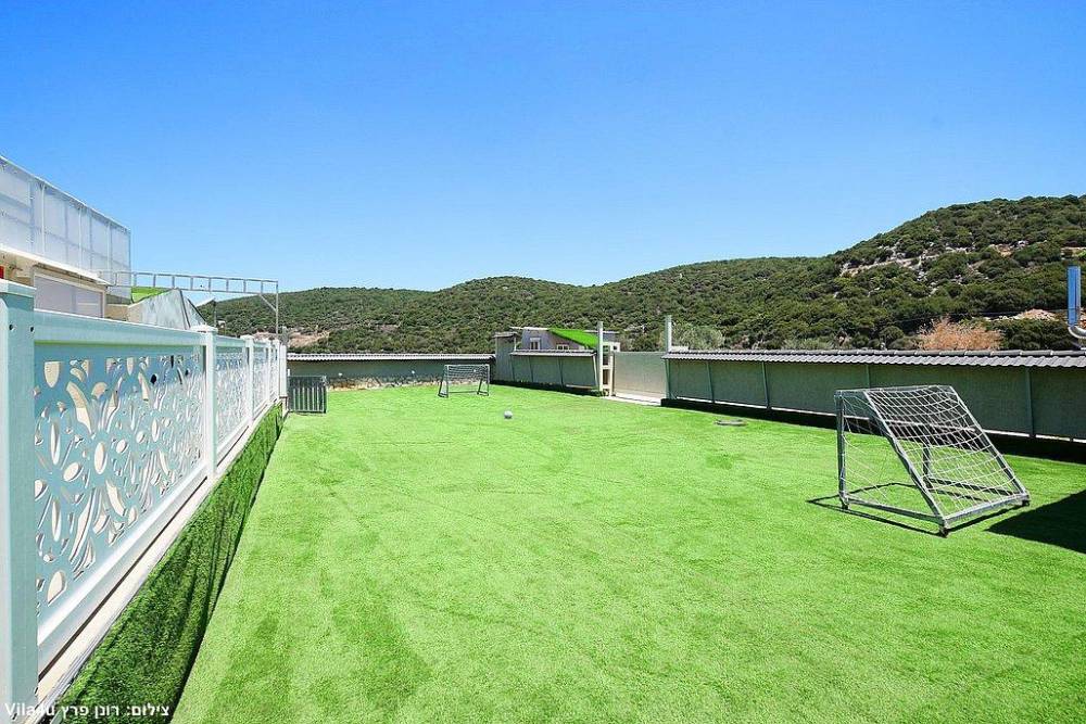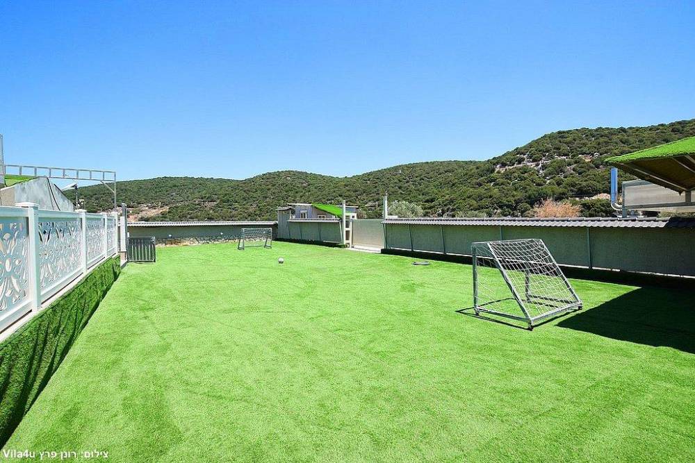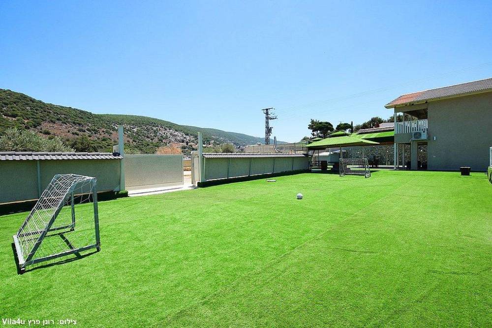 - חצר ענקית עם מדשאות ומגרש כדורגל עם 2 שערים וכדור