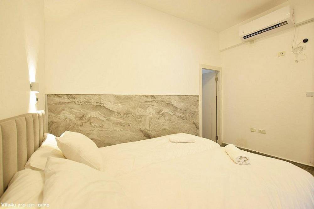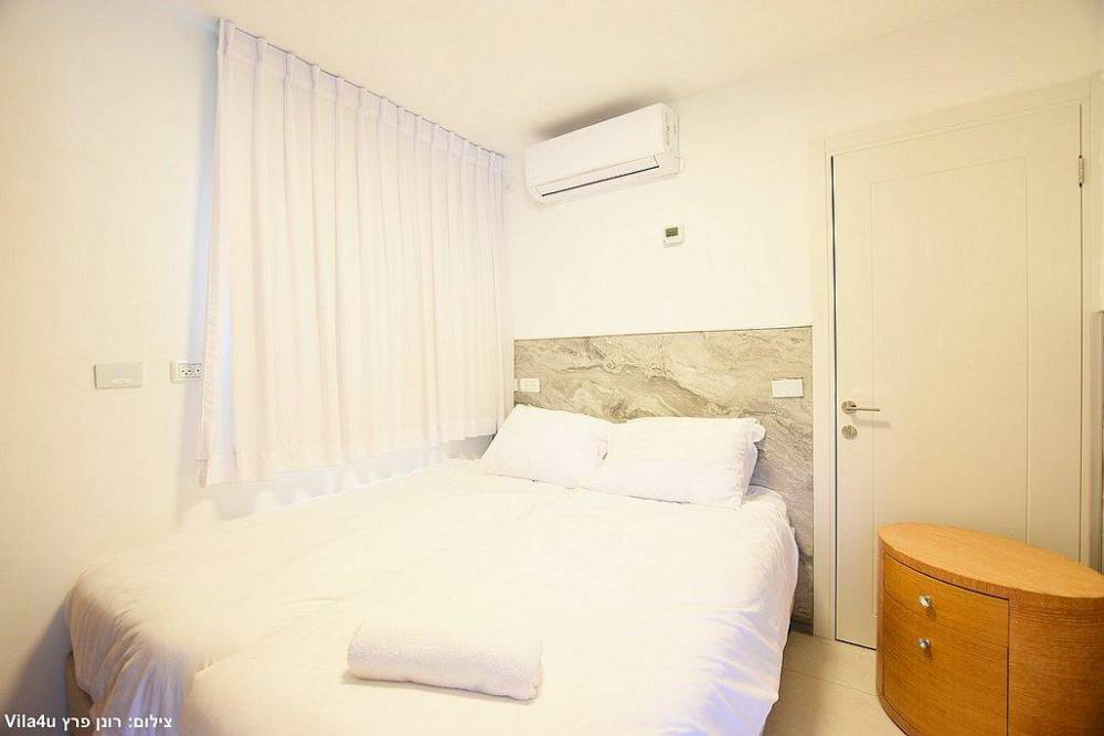 - כל חדר מאובזר במיטה זוגית מפנקת, ארונית לאחסון הבגדים, שידות, ומיזוג אוויר.