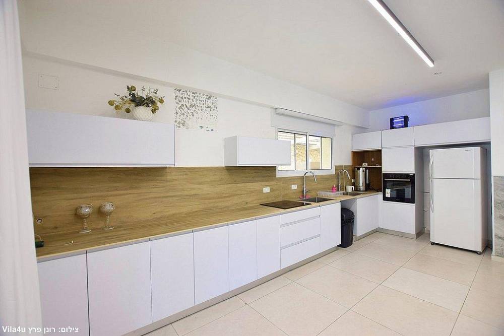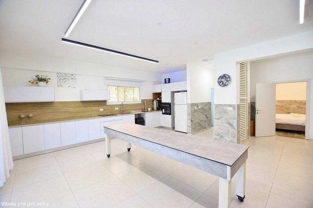 - מטבח רחב מאובזר כולל אי ובו : מקרר גדול, מקפיא, תנור אפיה, כיריים אינדוקציה, 2 כיורים, פלטה ומיחם לשבת