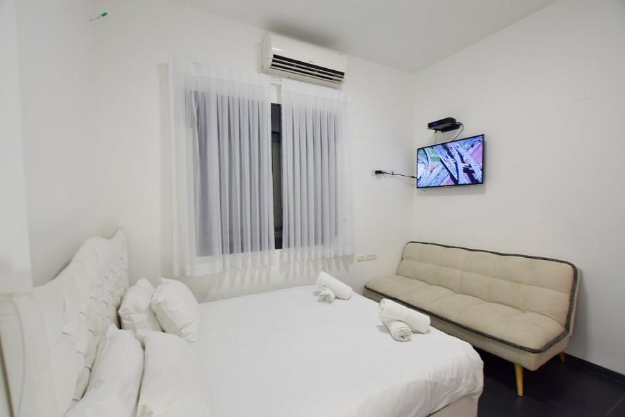 סלון עם מיטה נפתחת, טלוויזיה, פינת אוכל, מיזוג אוויר