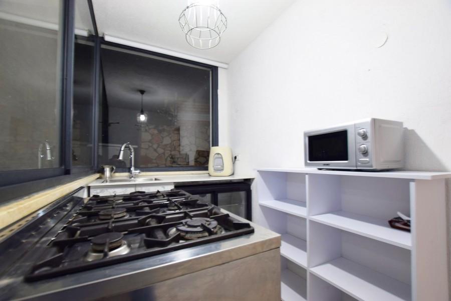 סטודיו עם מיטה זוגית, מזגן, מקלחת ושירותים מטבחון הכולל: כיריים גז, תנור, תמי 4, מקפיא חיצוני.