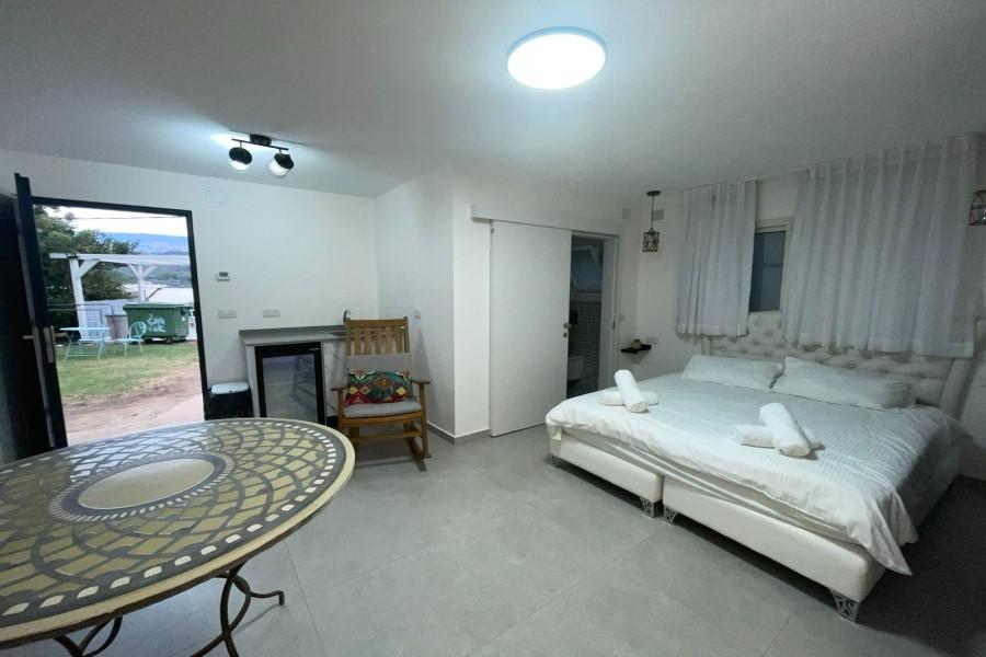 - סטודיו עם מיטה זוגית, פינת אוכל, כורסאות ישיבה.