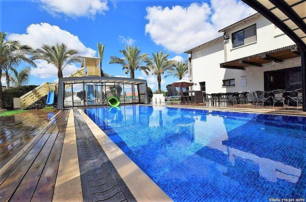 הוילה מעוצבת ובנויה בסטנדרטים גבוהים ובה תוכלו להנות מבריכת שחייה ענקית מחוממת ומקורה (בחודשי החורף) עם מגלשה ענקית וייחודית! בנוסף במתחם ג'קוזי ספא, משחקי שולחן, משחקים לילדים, מגוון פינות ישיבה ועוד..