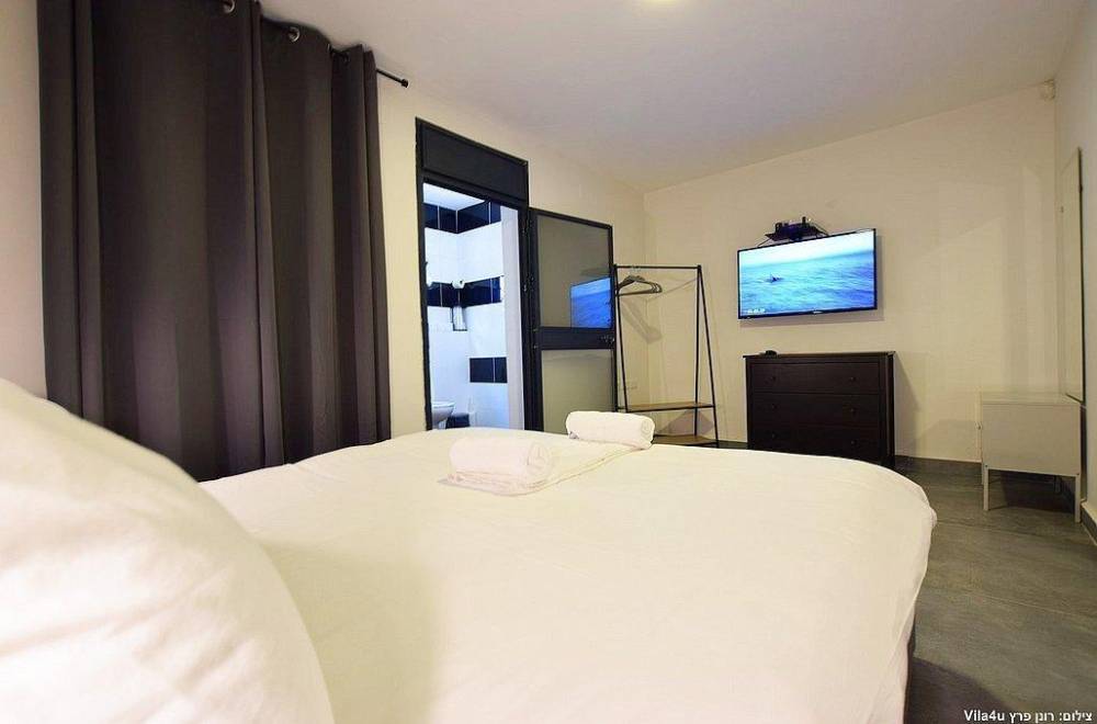 מיטה זוגית נוחה, ארונות ושידות אחסון, טלוויזיה, מיזוג אוויר ומרפסת (ל- 4 מהחדרים קיים חדר רחצה פרטי)