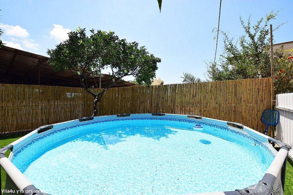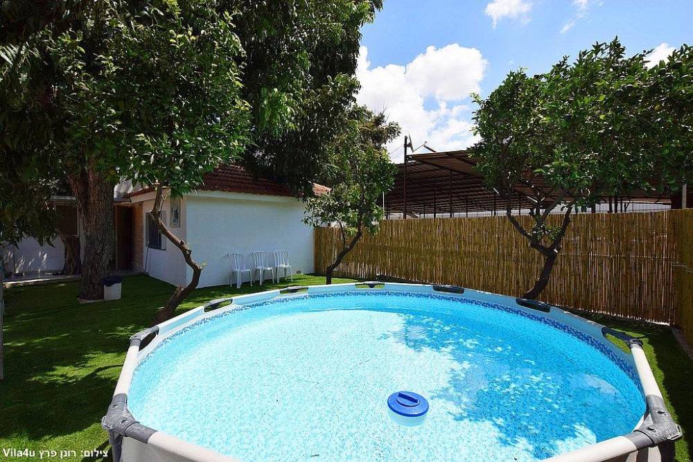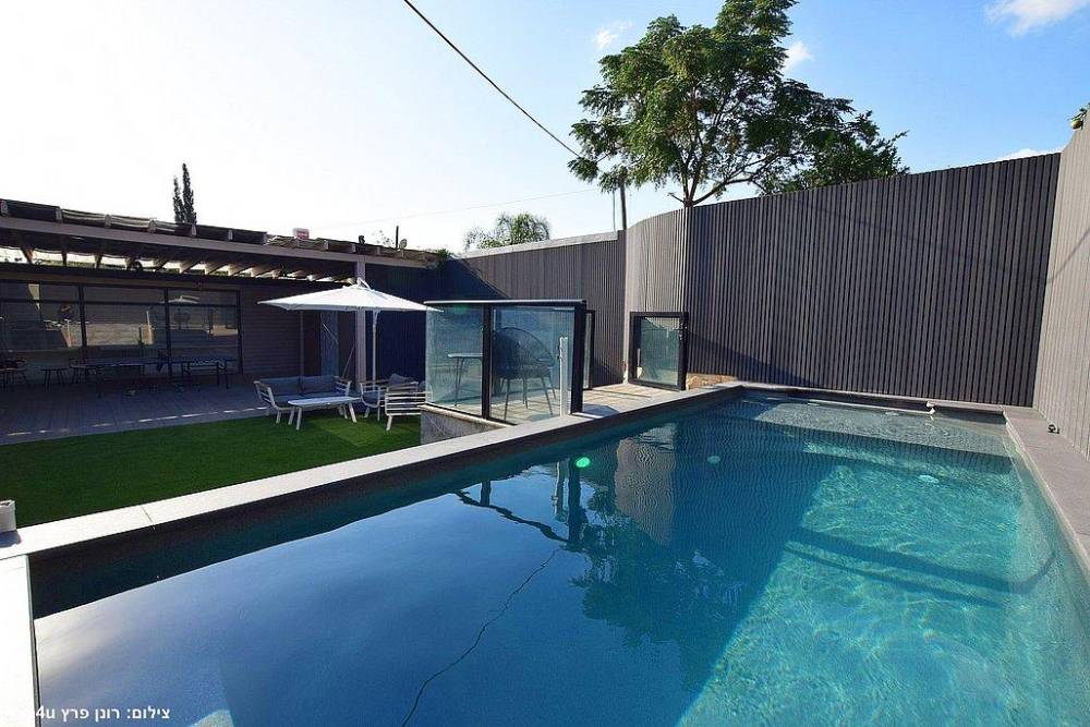 מדשאה ענקית עם בריכת שחייה ( מחוממת בעונת החורף ) מגודרת לבטחון הילדים
