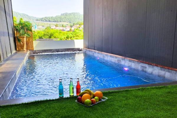 - בריכת שחיה פרטית מחוממת בנויה בגודל 8 מטר, אל מול נוף פסטורלי