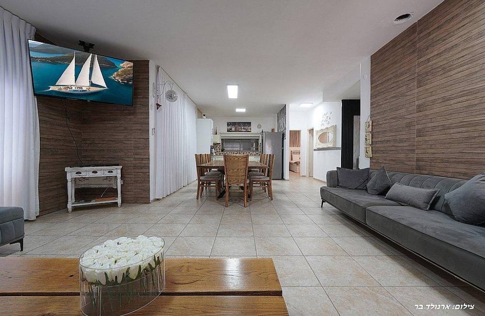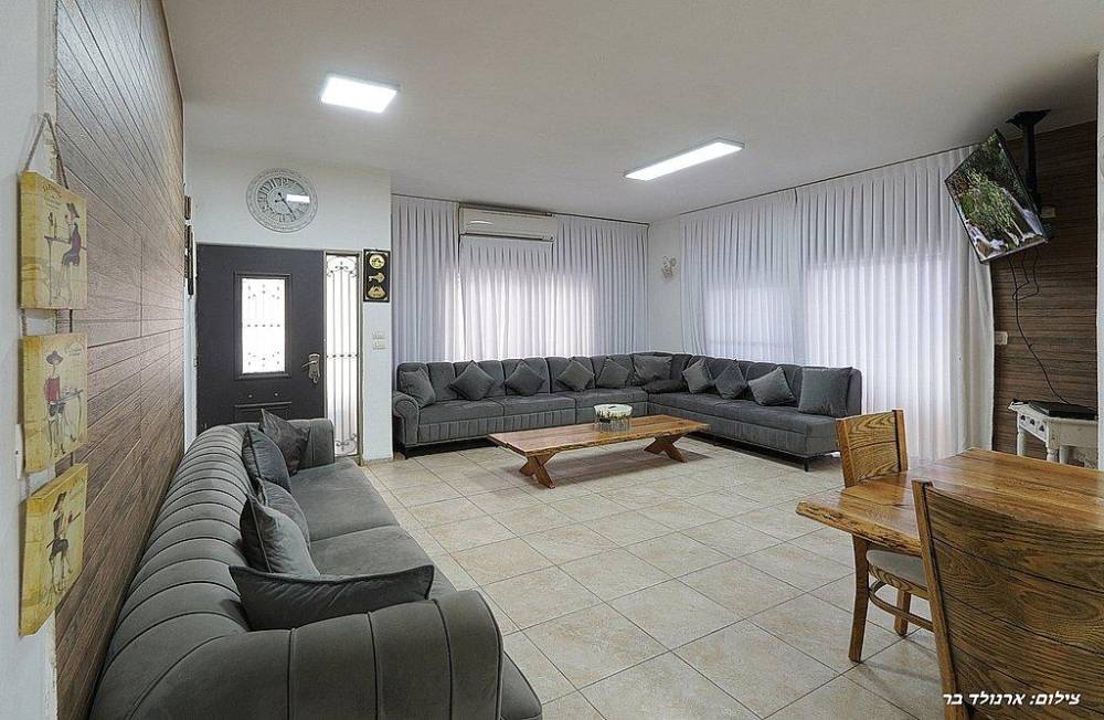 סלון מעוצב עם מסך LCD בגודל 50 אינץ' עם חיבור ל-YES ונטפליקס + מקרן קול