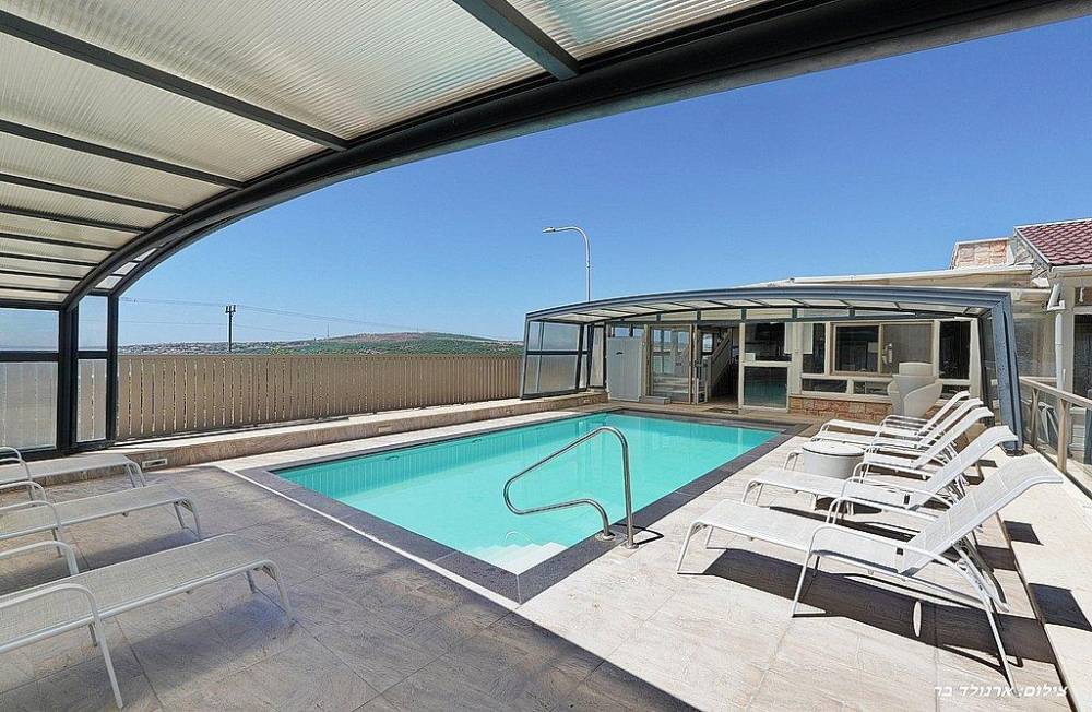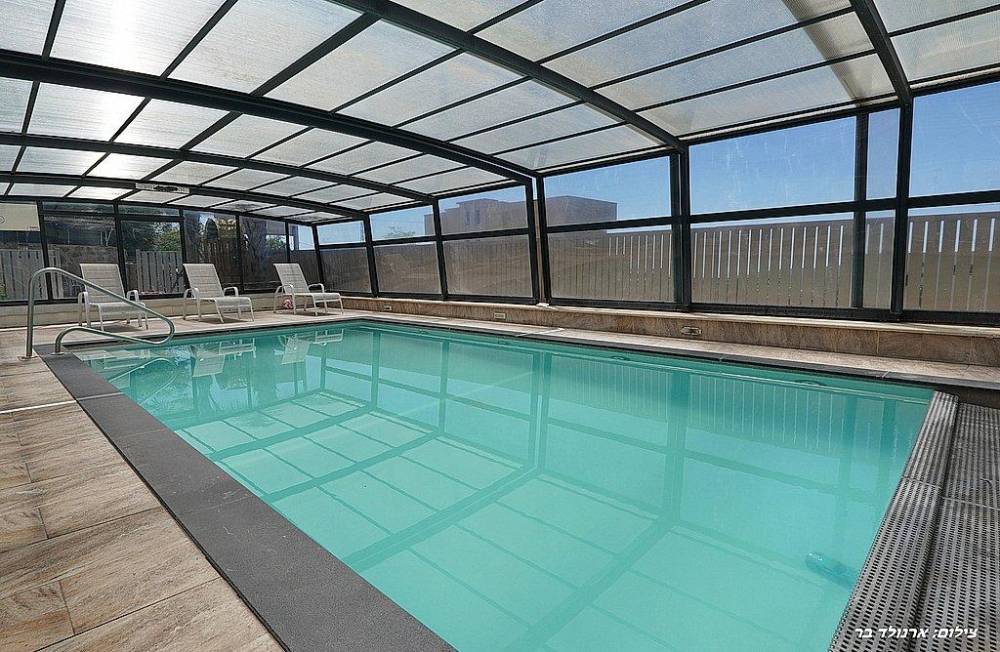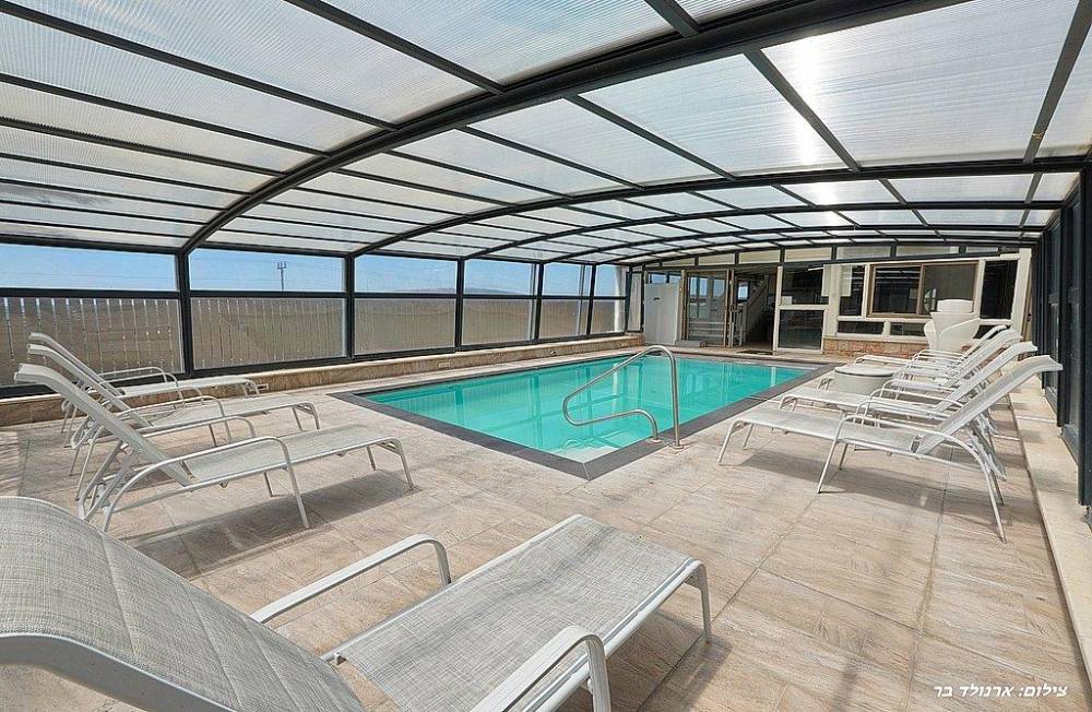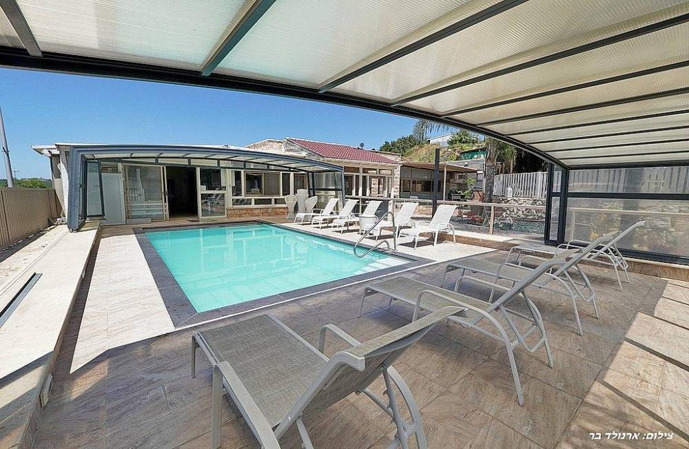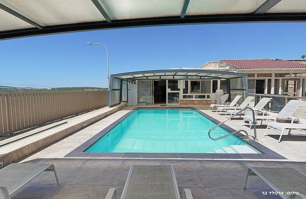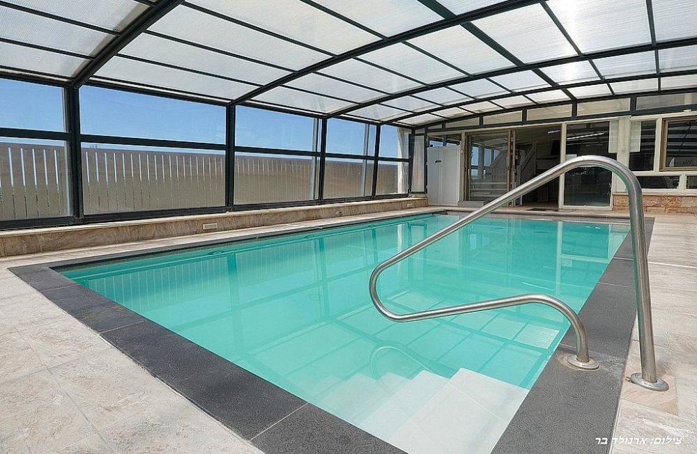 בריכת שחייה צלולה בגודל 8.5X4 מטר, עומק מקסימלי 1.60