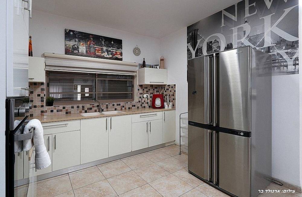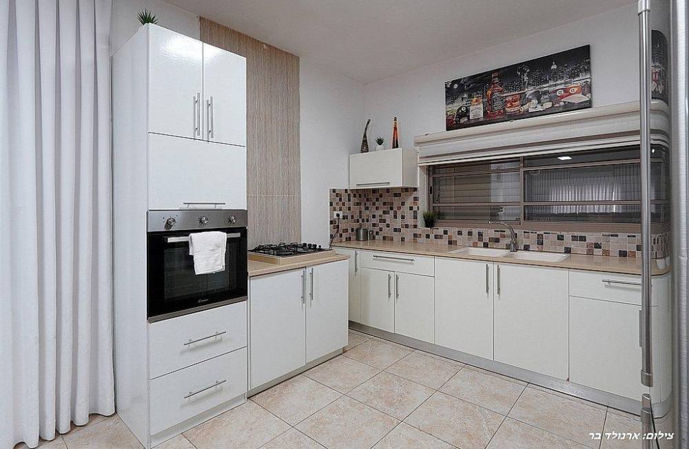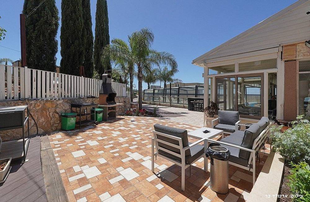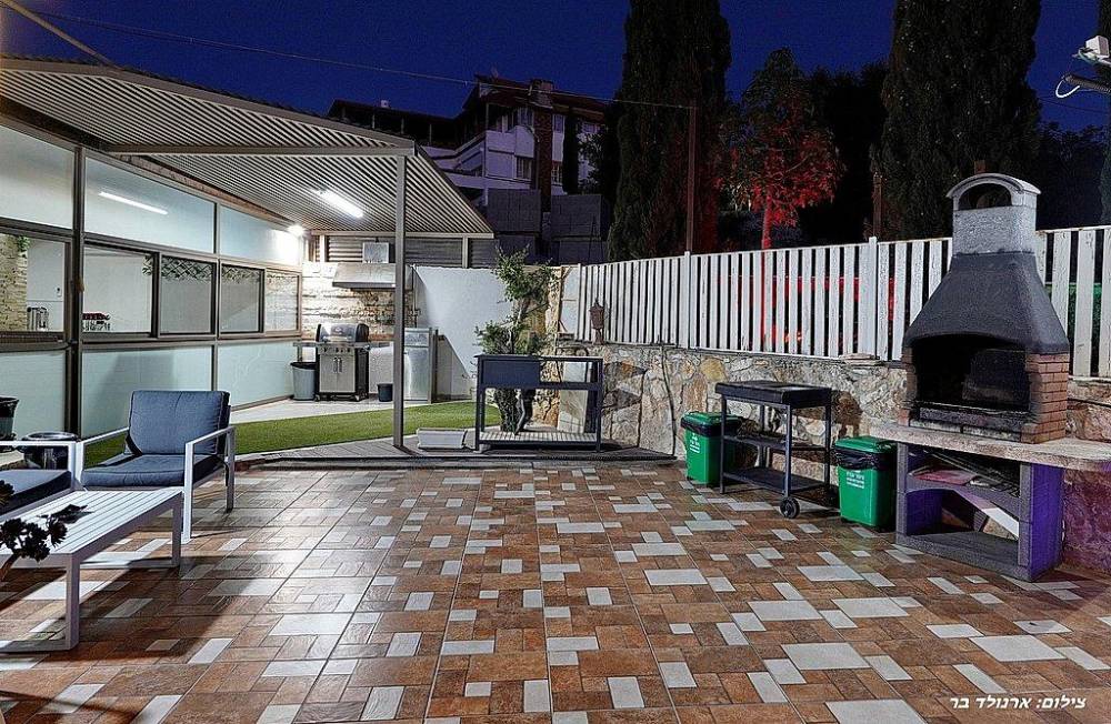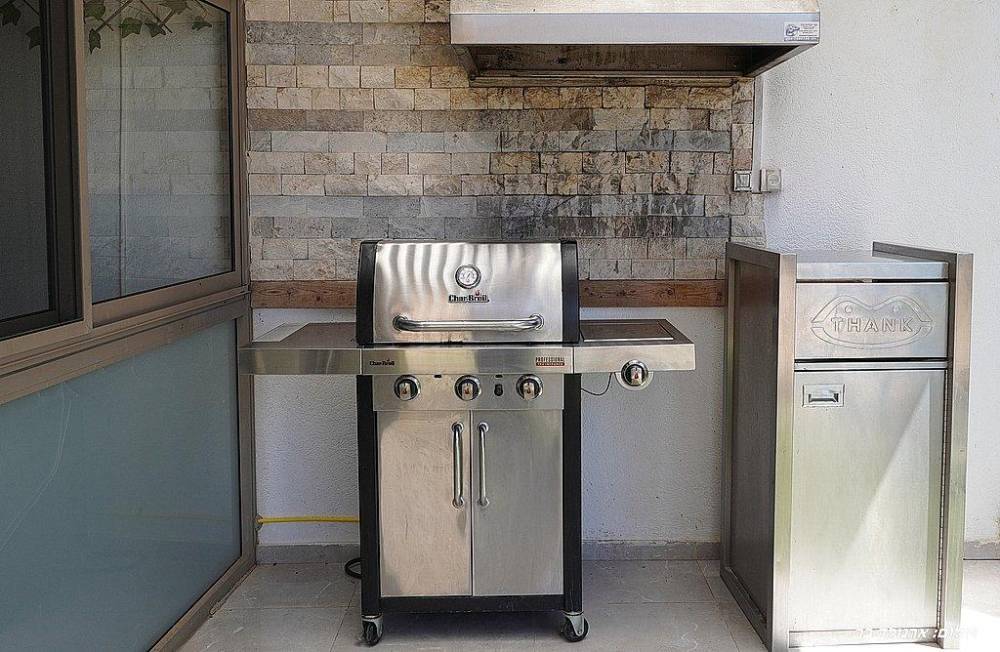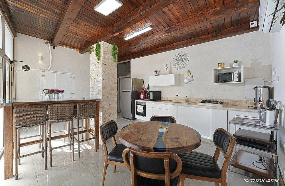 מטבח חיצוני ובו: תמי 4, מקרר, מצנם, מדיח כלים, תנור וכיריים
