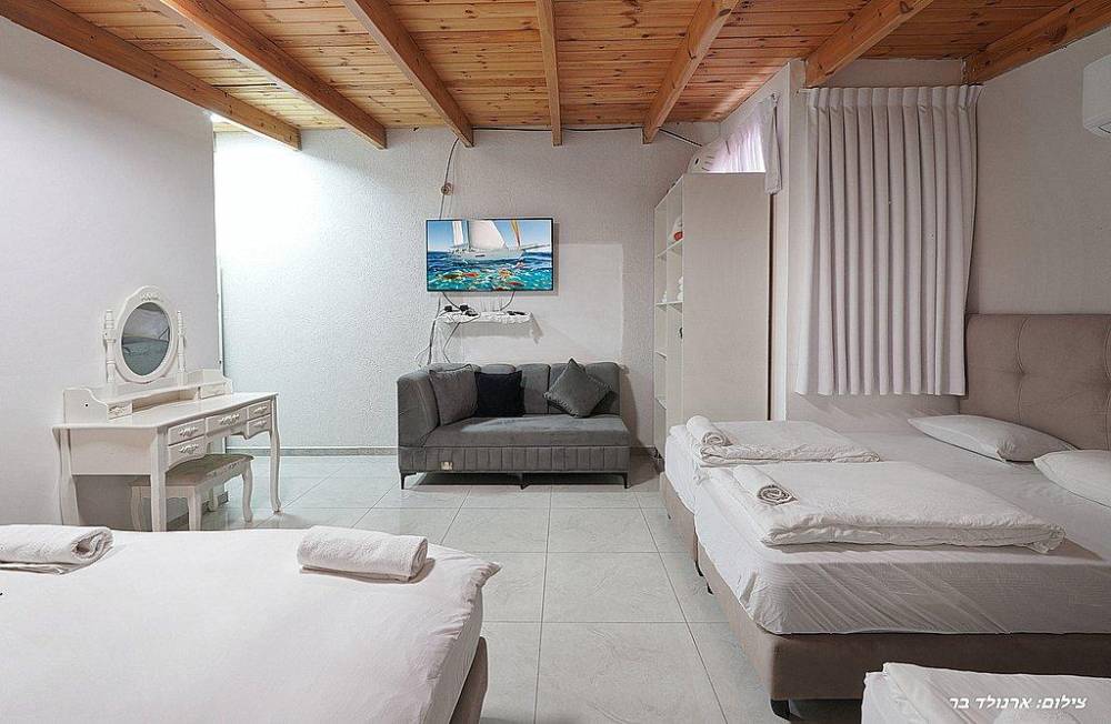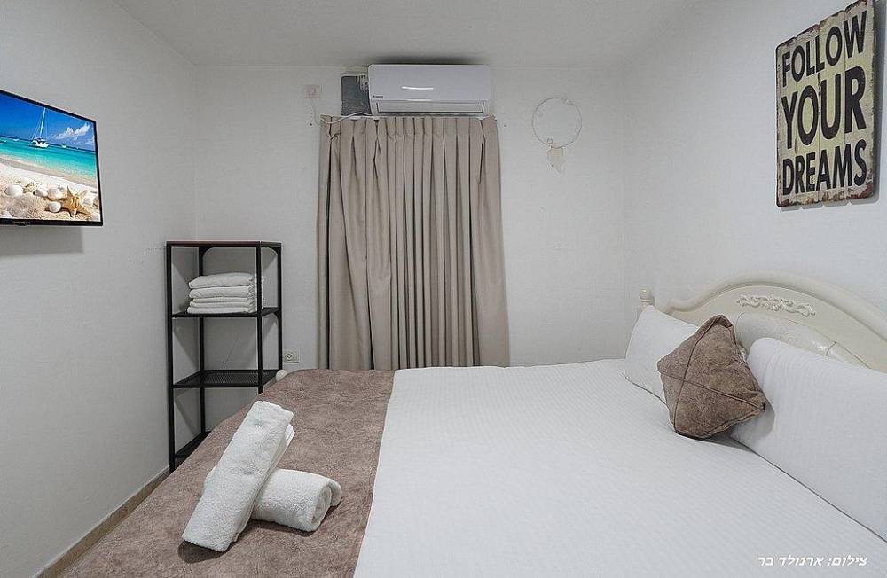 באחד החדרים 3 מיטות זוגיות, חדר רחצה פרטי, מיזוג אוויר וטלוויזיה