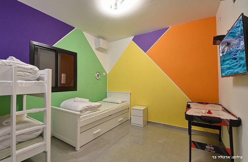 מיטת קומתיים, מיטת חבר נפתחת, טלוויזיה, מזגן ושולחן הוקי