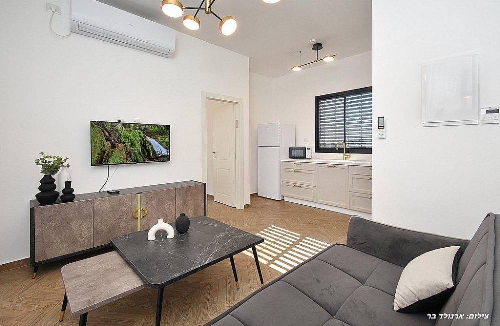 סלון יוקרתי + מסך טלוויזיה בגודל 75 אינץ' עם חיבור ל-Yes