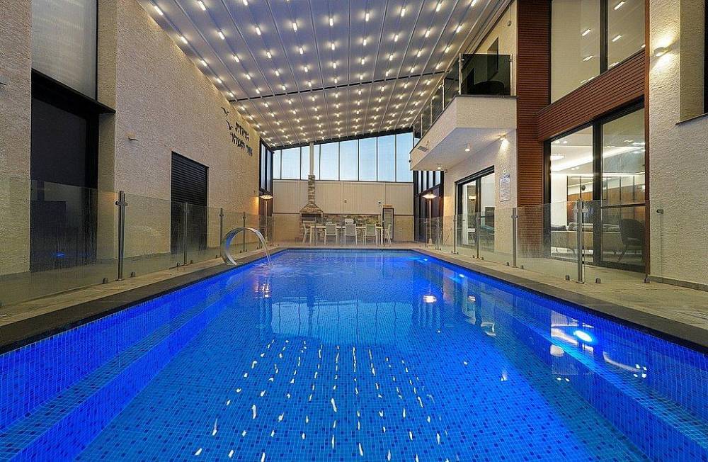 בריכת שחייה גדולה מחוממת מקורה בגודל 9X4