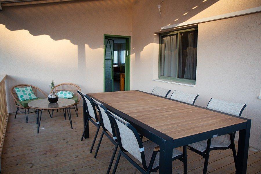 קיימת יציאה למרפסת עם שולחן סנוקר ופינת אוכל