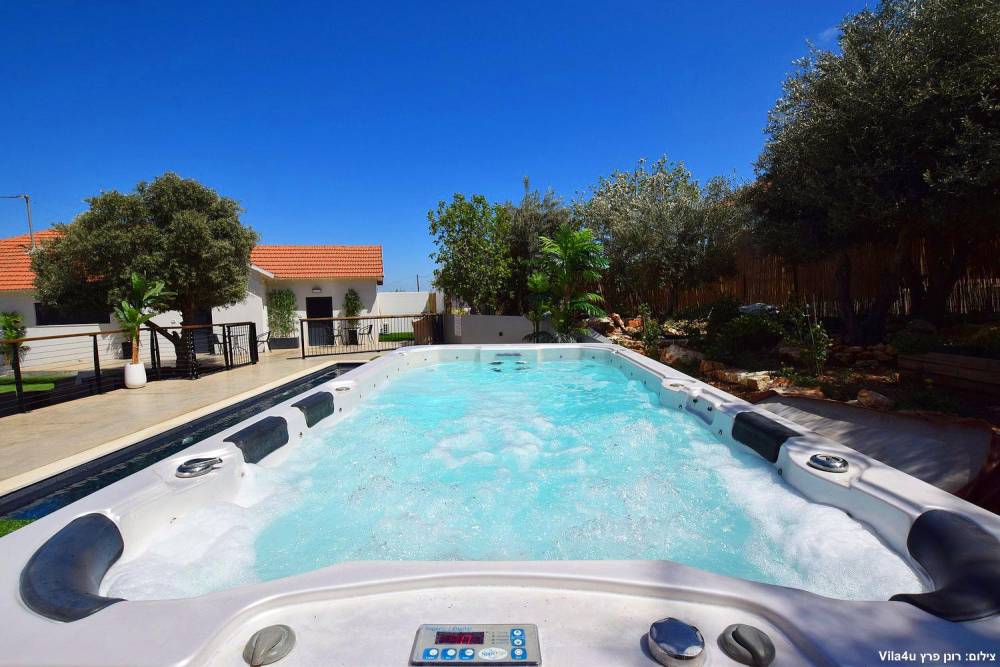 במתחם תוכלו להנות ממתחם חיצוני מטופח עם מדשאות, פינות ישיבה, מטבח חוץ, עמדת מנגל מקצועית, בריכת זרמים מגודרת ומחוממת ואף ג'קוזי ספא מפנק.