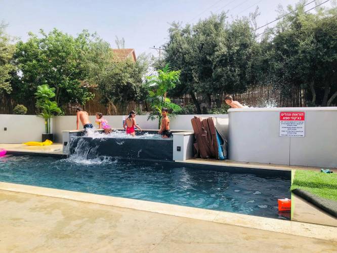 בריכת זרמים מגודרת בגודל 10 על 3 מטר, מחוממת 40 מעלות