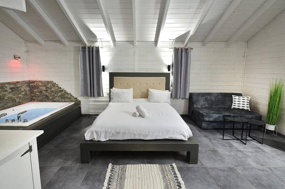 במתחם 4 צימרים מפנקים לזוגות, משפחות וקבוצות עד 23 אורחים, מתחם חיצוני עם בריכת שחייה, ג'קוזי ספא, משחקי שולחן ועוד.