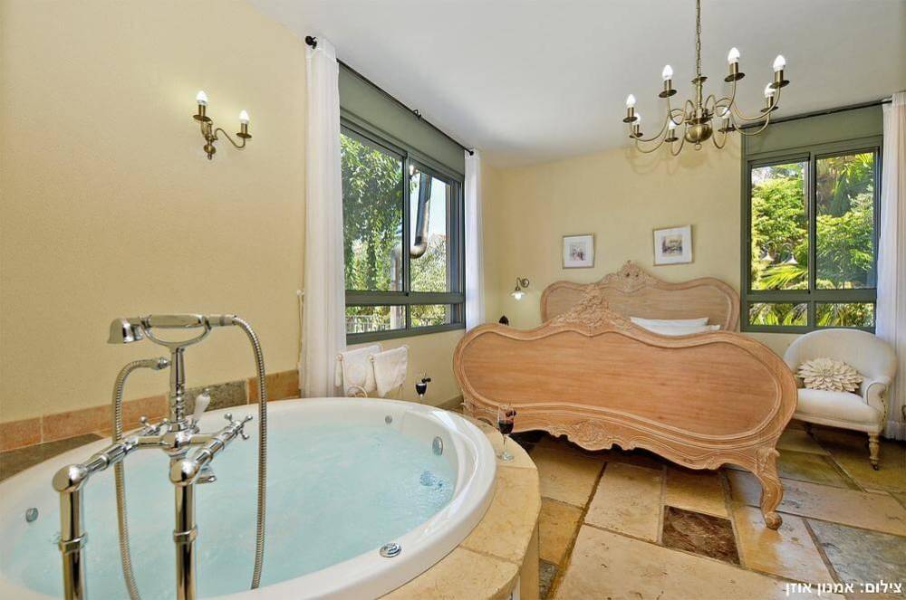 ג'קוזי זוגי צמוד למיטה + חדר רחצה צמוד