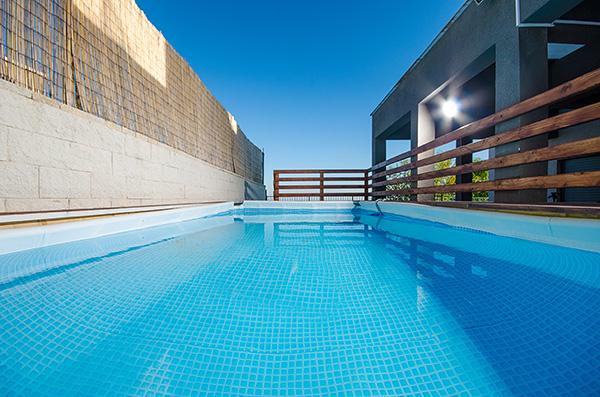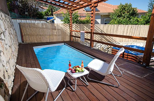 חצר הכוללת בריכת שחייה, פינת ברביקיו, ג'קוזי ספא זרמים,