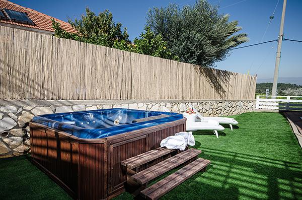 חצר מטופחת הכוללת: ג'קוזי ספא, בריכת שחייה, פינת ברביקיו