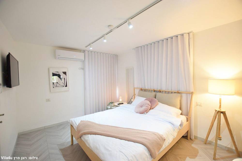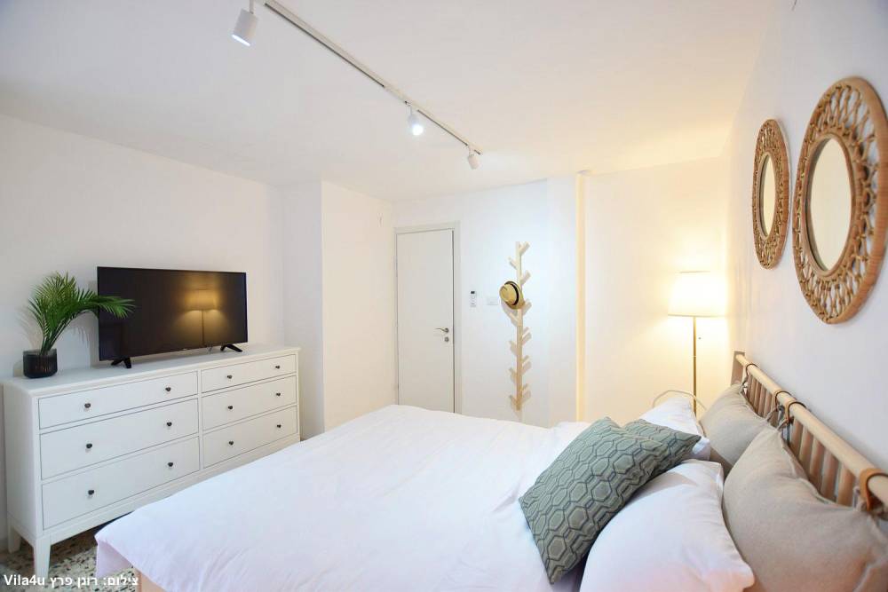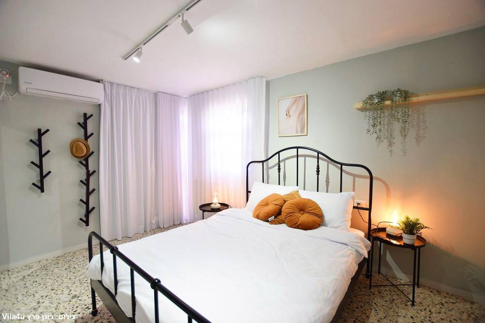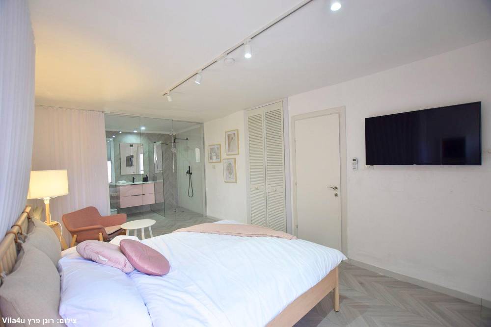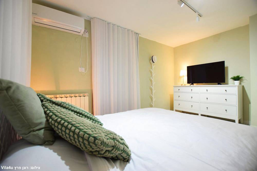 מיטה זוגית, טלוויזיה חכמה, מיזוג אוויר,שידות ואורונות לאחסון