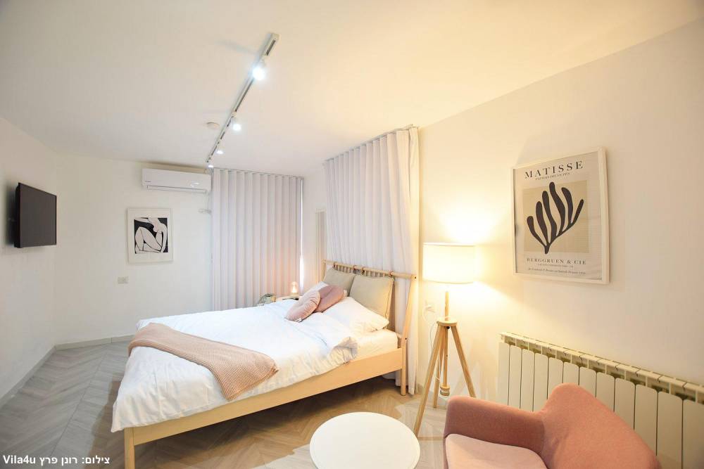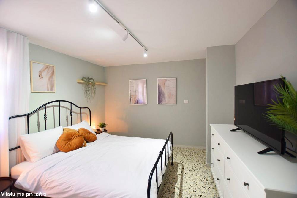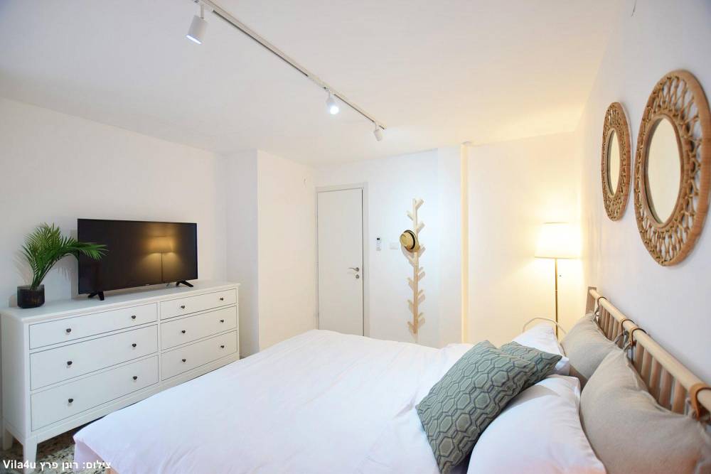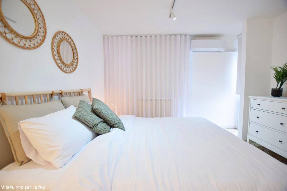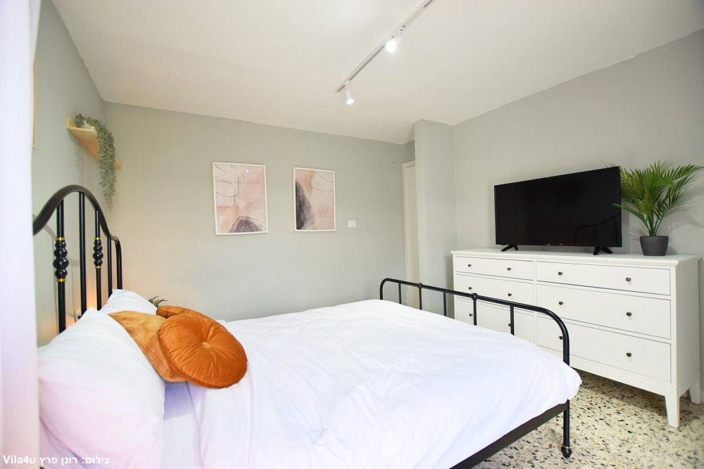 מיטה זוגית, טלוויזיה חכמה, מיזוג אוויר,שידות ואורונות לאחסון