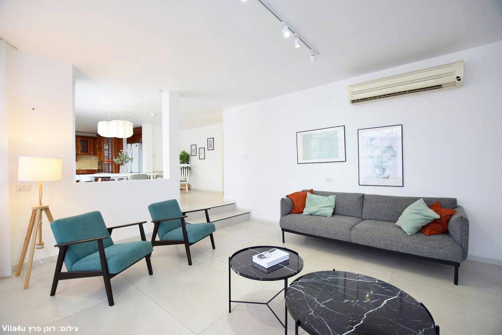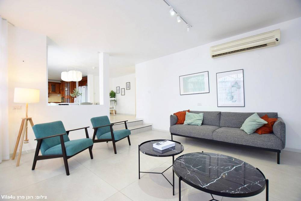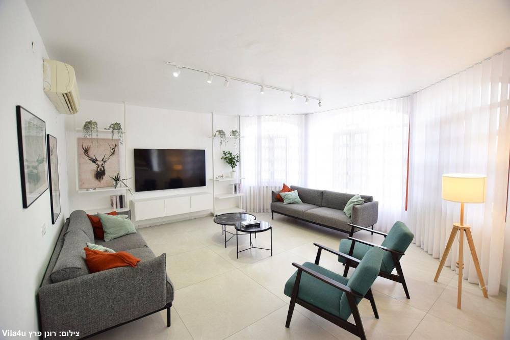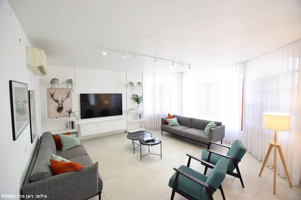 סלון מרווח עם מערכת ישיבה וטלוויזיה חכמה