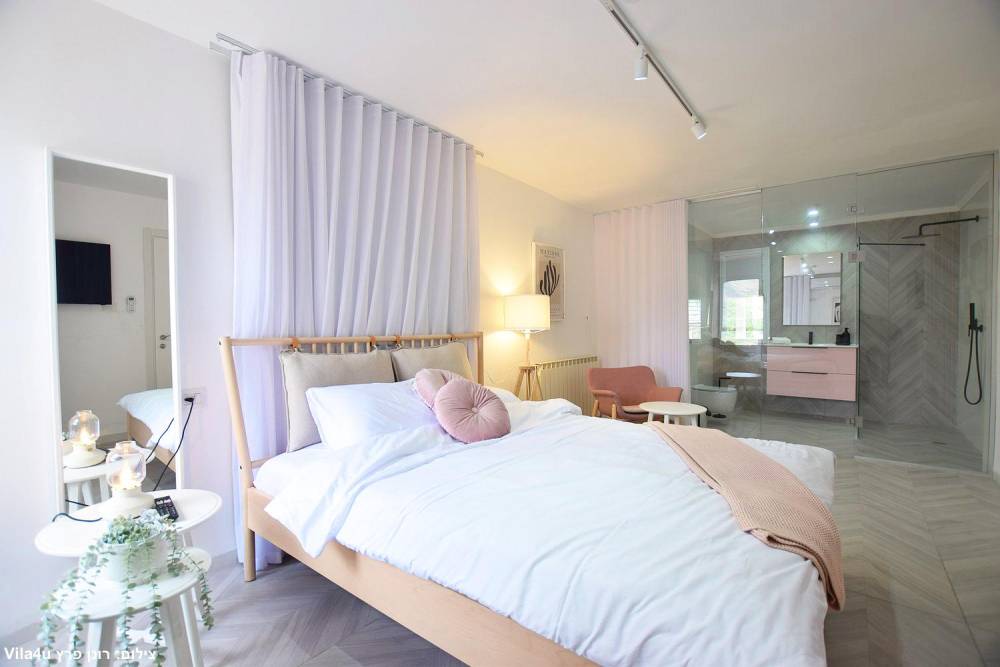 הוילה בעלת 4 חדרי שינה זוגיים, מתוכם חדר מאסטר עם חדר רחצה פרטי, חדר גלריה נוסף (עם 10 מזרונים), סלון ומטבח מאובזרים קומפלקט, יציאה אל חצר מרהיבה עם בריכת שחייה, מגוון פינות ישיבה, עמדת מנגל עם מטבח חוץ ועוד מגוון פינוקים!