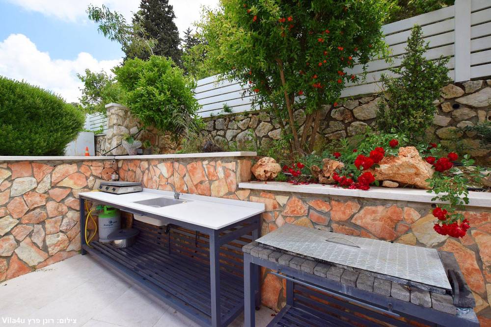 מטבח חוץ המכיל: משטח עבודה, מקרר, כיריים גז