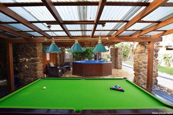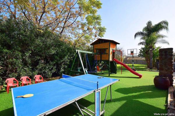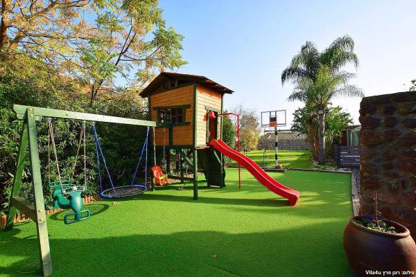 בחצר הוילה תוכלו למצוא בריכת שחייה (מחוממת בחורף), ג'קוזי ספא גדול, מיטות שיזוף ופינות ישיבה, מנגל מקצועי, שולחנות משחק, מדשאות גדולות עם תאורה לילית נדנדות לילדים, מגלשה ועוד...