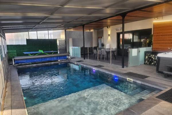 בריכת שחייה מחוממת מקורה (8×4) – בטמפרטורה קבועה של 28 מעלות