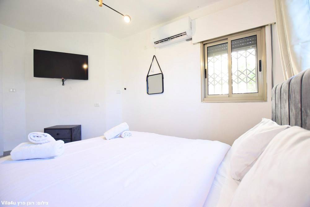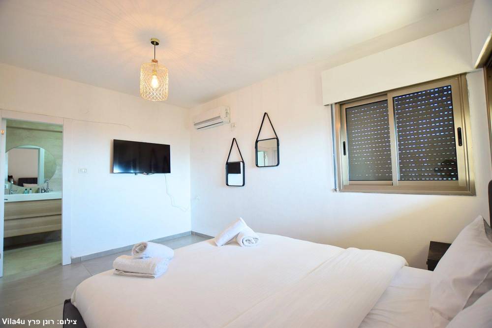 מיטה זוגית מוצעת, שידות, מיזוג אוויר וטלוויזיה