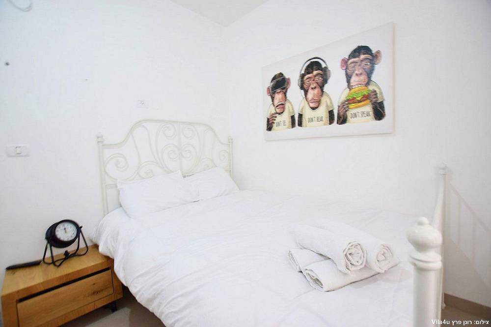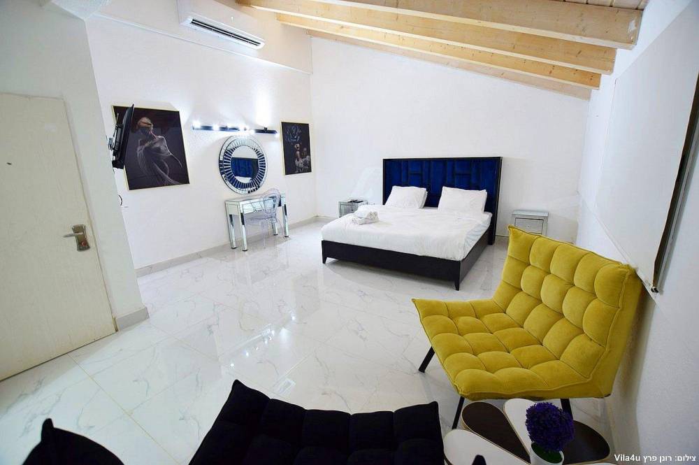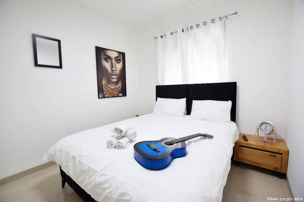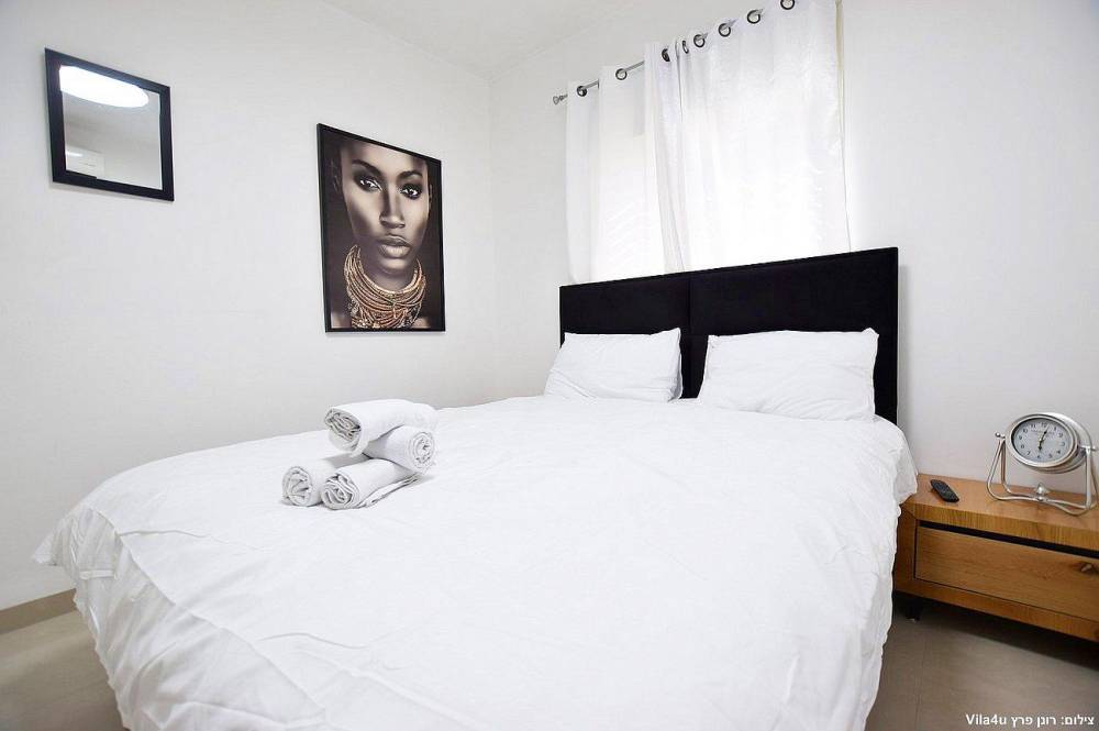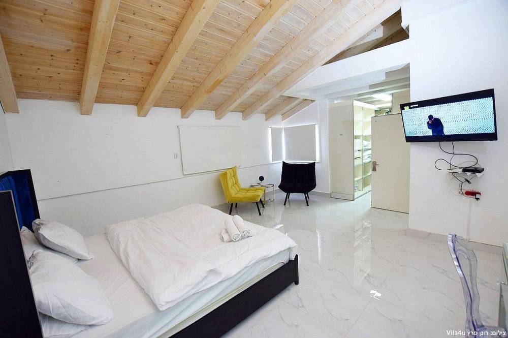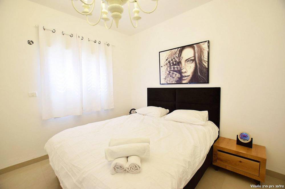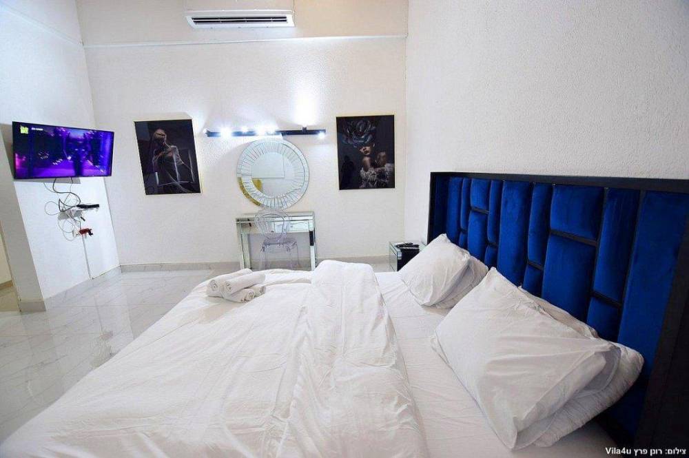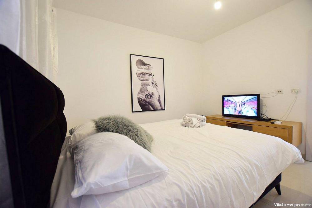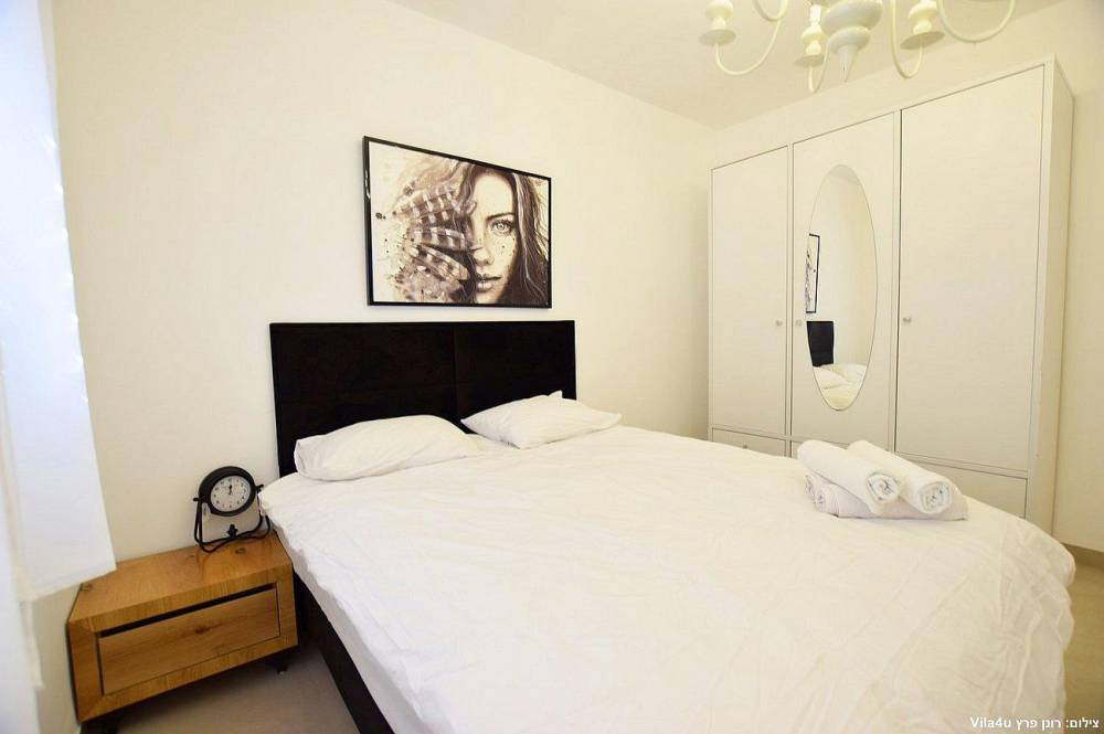 4 חדרי שינה מעוצבים בכל חדר: מיטה זוגית נוחה, טלוויזיה, מיזוג אוויר וארון לאחסון