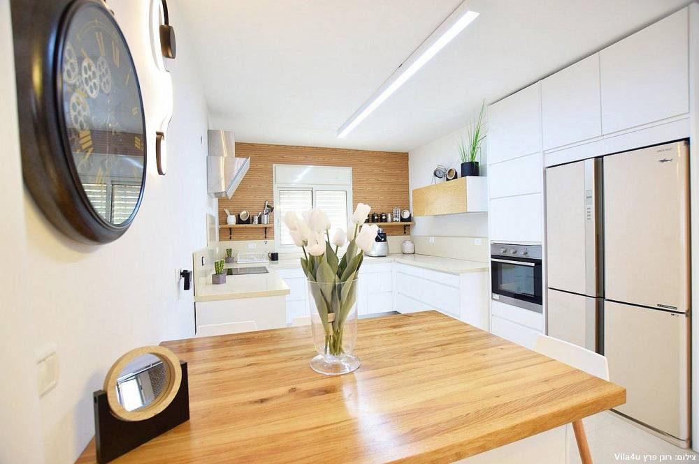 מטבח מאובזר במלואו הכולל: מקרר, כיריים, תנור אפייה, מיקרוגל, תמי 4, ]ינת קפה