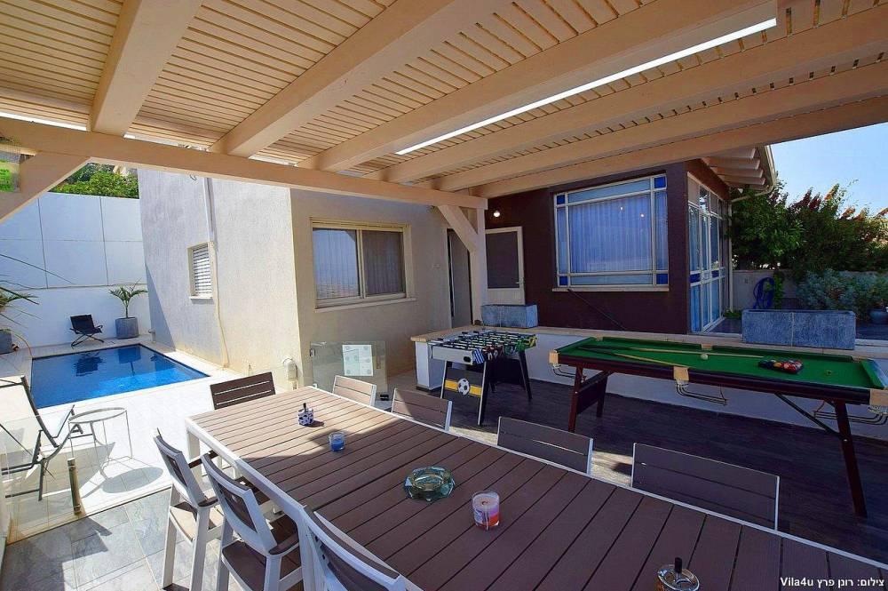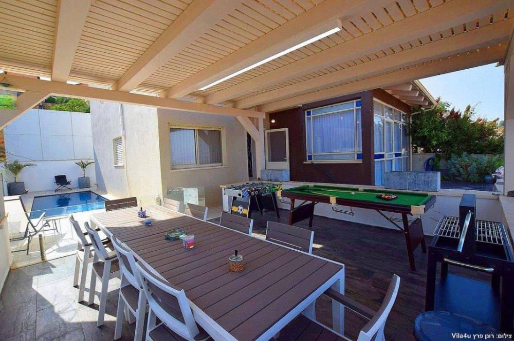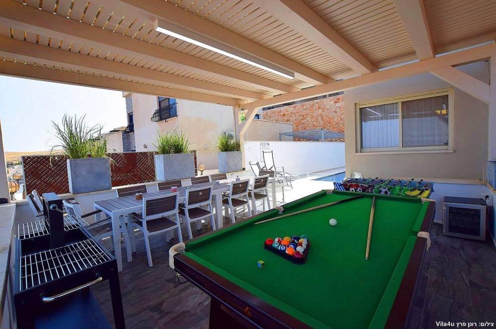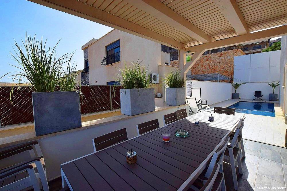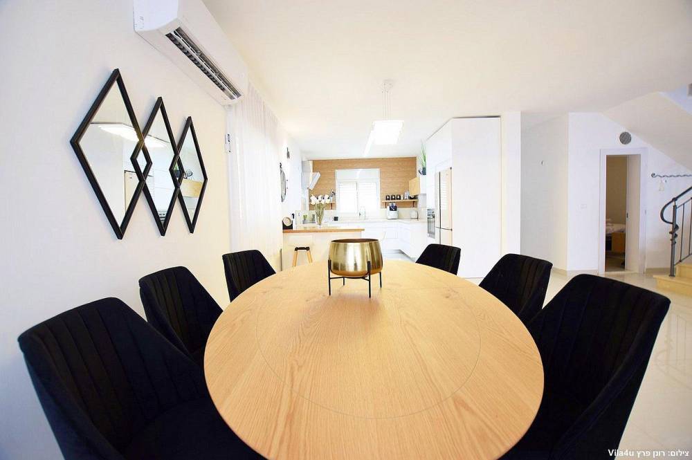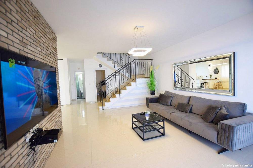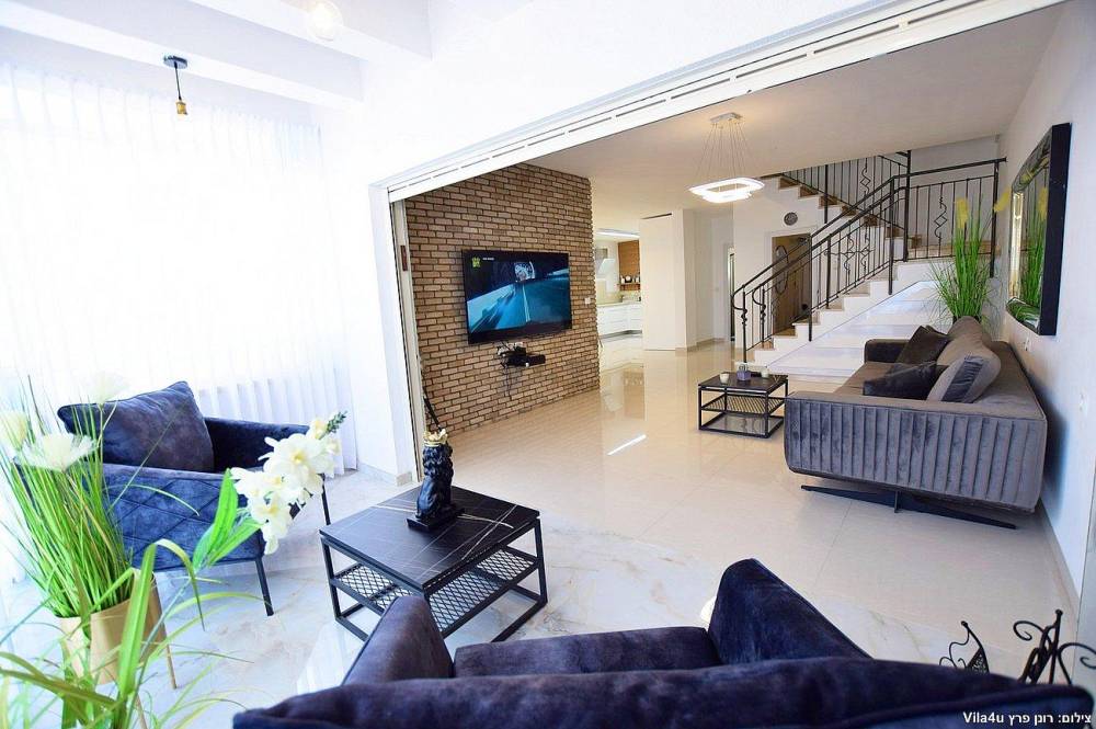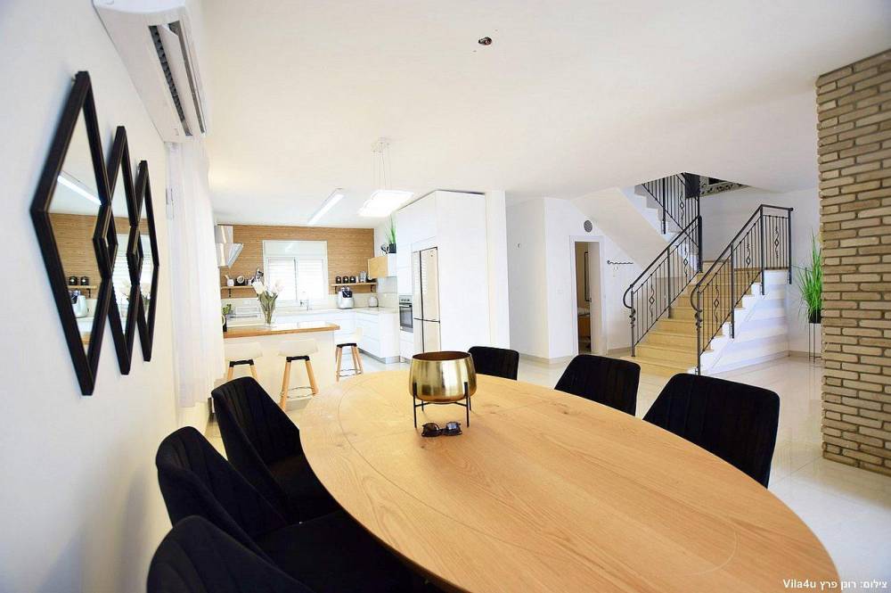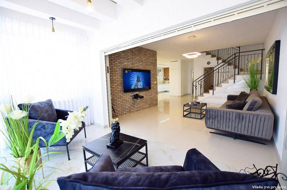 הוילה החדשה משלבת עיצוב מודרני ופרטיות מוחלטת עם 5 חדרי שינה מעוצבים וחצר חלומית עם בריכת שחייה, משחקי שולחן ופינות ישיבה קסומות.