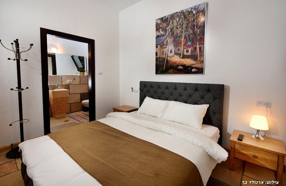 אבזור החדרים: מיטה זוגית מוצעת, מסך 55 אינץ' עם חיבור ל- HOT, ארונות ושידות אחסון, מזגן