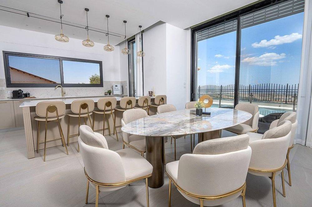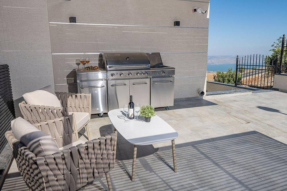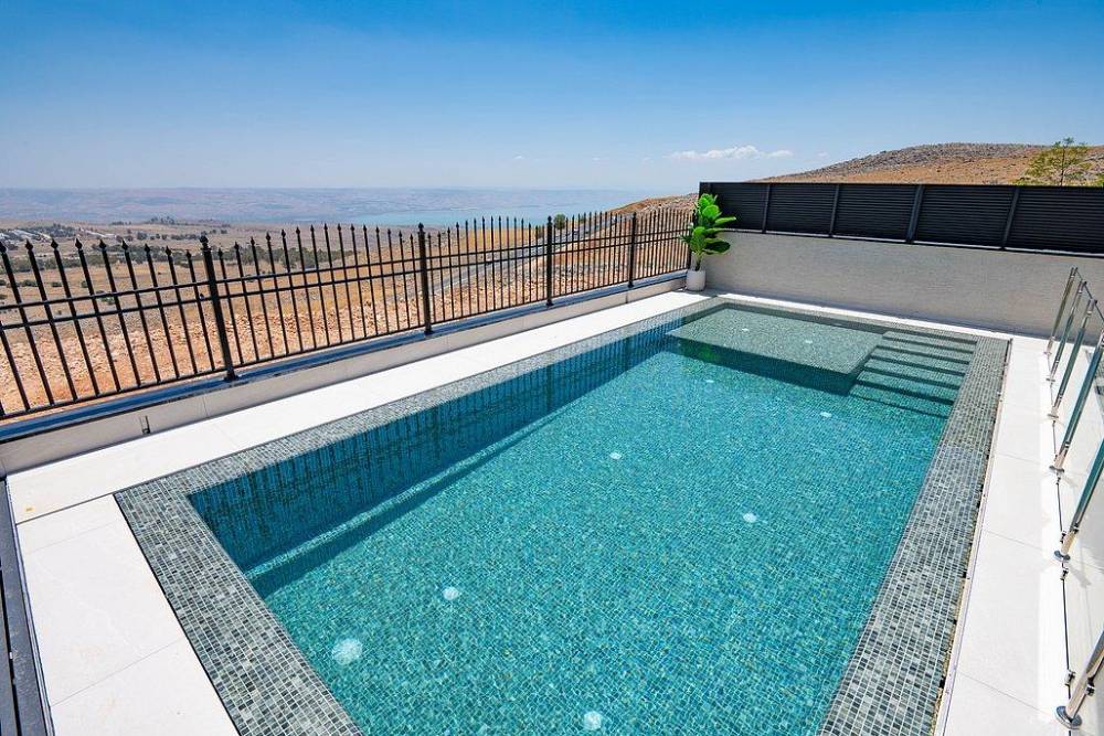 הוילה בנויה על פני 3 קומות ומציעה 8 חדרי שינה מעוצבים, שני מטבחים מאובזרים, סלון רחב ידיים, מתחם משחקים, מרפסות עם נוף מהמם ובריכה פרטית מחוממת מול נוף גלילי פתוח.
